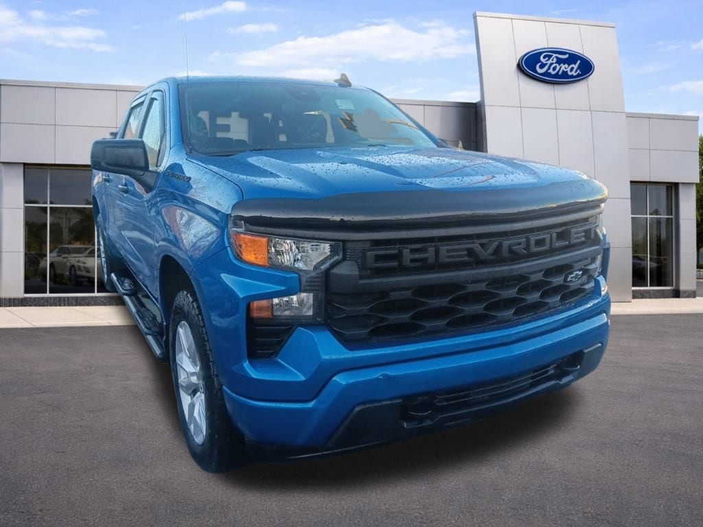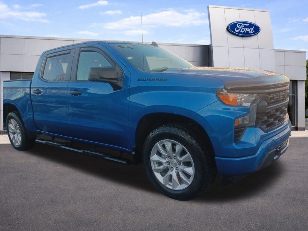 2022 Chevrolet Silverado 1500 Custom 4D Crew Cab Glacier Blue Metallic Custom 2.7L Turbo 8-Speed Automatic 4WD