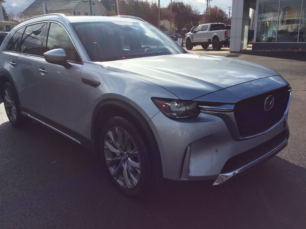 KEY FORD OF EXETER is proud to present you with another True Market Priced Pre-Owned Vehicle. Transparent Pricing Of $ 31694 !! This 2024 Mazda CX-90 3.3 Turbo Premium Ford Blue Advantage: Blue Certified is loaded with the following Factory Options: Ford Blue Advantage: Blue Certified Certified, 12 Speakers, 3.692 Axle Ratio, 3rd row seats: bench, 4-Wheel Disc Brakes, ABS brakes, Air Conditioning, Alloy wheels, AM/FM radio: SiriusXM, Auto High-beam Headlights, Auto-dimming Rear-View mirror, Automatic temperature control, Brake assist, Bumpers: body-color, Compass, Delay-off headlights, Driver door bin, Driver vanity mirror, Dual front impact airbags, Dual front side impact airbags, E911 Automatic Emergency Notification, Electronic Stability Control, Emergency communication system: MAZDA CONNECT, Exterior Parking Camera Rear, Four wheel independent suspension, Front anti-roll bar, Front Bucket Seats, Front Center Armrest w/Storage, Front dual zone A/C, Front reading lights, Fully automatic headlights, Garage door transmitter: HomeLink, Heads-Up Display, Heated door mirrors, Heated Front Bucket Seats, Heated front seats, Illuminated entry, Infotainment System Voice Command, Knee airbag, Leather Seat Trim, Leather Shift Knob, Leather steering wheel, Low tire pressure warning, Mazda Connected Services, Mazda Navigation System, Memory seat, Navigation system: MAZDA CONNECT, Occupant sensing airbag, Outside temperature display, Overhead airbag, Overhead console, Pandora Internet Radio Integration, Panic alarm, Passenger door bin, Passenger vanity mirror, Power door mirrors, Power driver seat, Power Liftgate, Power moonroof, Power passenger seat, Power steering, Power windows, Radio Broadcast Data System Program Information, Radio data system, Radio: AM/FM w/Bose Audio Sound System, Rain sensing wipers, Rear air conditioning, Rear anti-roll bar, Rear reading lights, Rear window defroster, Rear window wiper, Remote keyless entry, SMS Text Msg Audio Delivery & Reply, Speed control, Speed-sensing steering, Split folding rear seat, Spoiler, Steering wheel mounted audio controls, Tachometer, Telescoping steering wheel, Tilt steering wheel, Traction control, Trip computer, Turn signal indicator mirrors, Variably intermittent wipers, and Wheels: 21" x 9.5J Aluminum Alloy!!