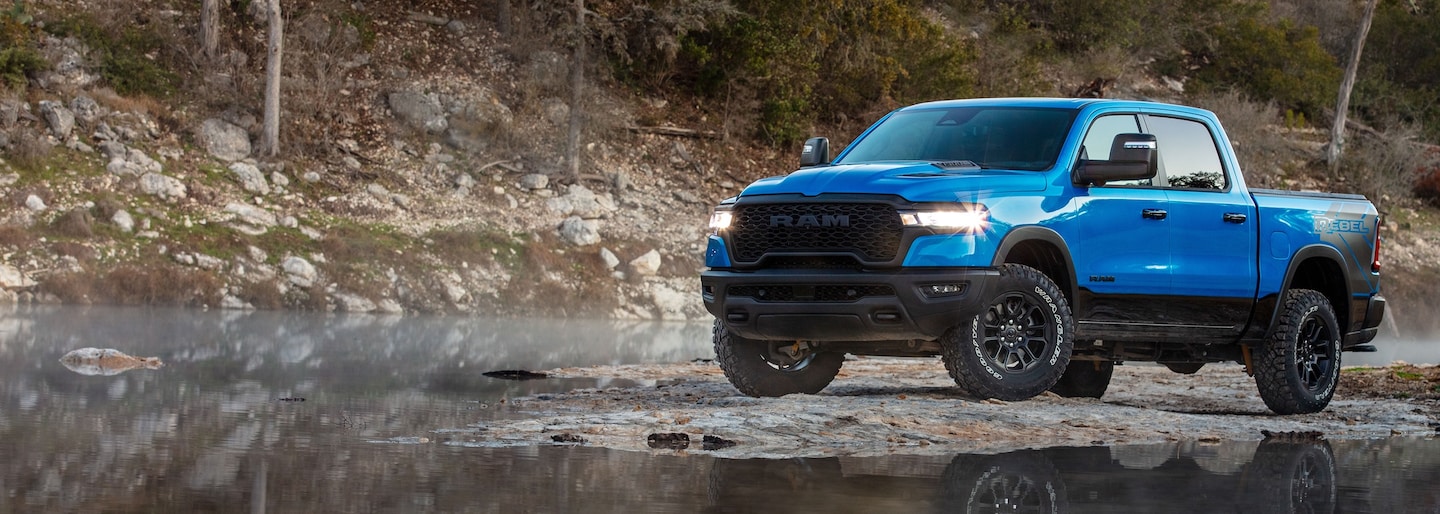 Shoppers comparing full-size pick-ups near Portsmouth can start here. The 2025 Ram 1500 emphasizes smooth turbocharged power and a refined ride. The 2025 Ford F-150 offers broad powertrain variety and strong towing. Use this guide to narrow your choice, then explore new truck inventory and current offers.