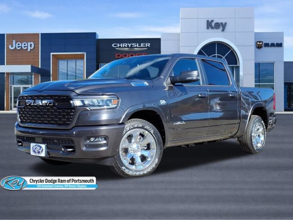 Key Chrysler Dodge Ram of Portsmouth is proud to present you with another True Market Priced Vehicle. This 2026 Ram 1500 Big Horn/Lone Star is loaded with the following Factory Options: Bed Utility Group (Exterior 115V AC Outlet, MOPAR 4 Adjustable Cargo Tie-Down Hooks, and Pick-Up Box Lighting), Big Horn Level 1 Equipment Group (115V Auxiliary Power Outlet, 3 Rear Seat Head Restraints, 4 Way Front Headrests, 400W Inverter, Auto Power-Folding Mirrors, Auto-Dimming Exterior Driver Mirror, Auto-Dimming Rear-View Mirror, Black Exterior Mirrors, Black Premium Power Mirrors, Body Color Fender Flares, Bucket Seats, Center Console Parts Module, Convex Wide-Angle Exterior Mirror Insert, Deluxe Cloth Bucket Seats, Exterior Mirrors Courtesy Lamps, Front Seat Back Map Pockets, Full Length Floor Console, Glove Box Lamp, Heated Front Seats, Heated Steering Wheel, Leather Wrapped Steering Wheel, Manual Adjust 4-Way Front Passenger Seat, Power 2-Way Driver Lumbar Adjust, Power Adjust 8-Way Driver Seat, Power Adjustable Pedals, Rear 60/40 Folding Seat, Rear Center Armrest, Rear Power Sliding Window, Rear Window Defroster, SiriusXM Radio Service, SiriusXM Satellite Radio, Steering Wheel Mounted Audio Controls, and Universal Garage Door Opener), Protection Group (Tow Hooks), Quick Order Package 27Z Big Horn, Sport Appearance Package (Black Interior Accents, Body Color Door Handles, Body Color Front Bumper, Body Color Tailgate Handle, Grille Surround 1 Body Color Texture 1 Black, and RAM Grille Badge - Chrome), 33 Gallon Fuel Tank, 4-Wheel Disc Brakes, 48V Belt Starter Generator, 4G LTE Wi-Fi Hot Spot, 6 Speakers, ABS brakes, Air Conditioning, Alloy wheels, AM/FM radio, Apple CarPlay, Apple CarPlay/Android Auto, Auto High-beam Headlights, Brake assist, Bumpers: chrome, Cloth Bucket Seats, Compass, Connectivity - US/Canada, Delay-off headlights, Driver door bin, Dual front impact airbags, Dual front side impact airbags, Electronic Stability Control, Front anti-roll bar, Front Bucket Seats, Front Center Armrest w/Storage, Front fog lights, Front License Plate Bracket, Front reading lights, Front wheel independent suspension, Fully automatic headlights, Google Android Auto, GPS Antenna Input, Heated door mirrors, Illuminated entry, Integrated Center Stack Radio, Low tire pressure warning, Manual Adjust 4-Way Driver Seat, Manual Folding Exterior Mirrors, Manufacturer's Statement of Origin, Occupant sensing airbag, Outside temperature display, Overhead airbag, Overhead console, Panic alarm, ParkView Rear Back-Up Camera, Passenger door bin, Passenger vanity mirror, Power door mirrors, Power steering, Power windows, Radio data system, Rear anti-roll bar, Rear step bumper, Rear Wheelhouse Liners, Remote keyless entry, Speed control, Supplier Part Tracking (J-1), Tachometer, Telescoping steering wheel, Tilt steering wheel, Traction control, Trailer Brake Cont