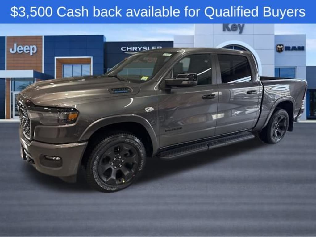 Key Chrysler Dodge Jeep Ram of White River is proud to present you with another True Market Priced Vehicle. This 2026 Ram 1500 Big Horn/Lone Star is loaded with the following Factory Options: Bed Utility Group (Exterior 115V AC Outlet, MOPAR 4 Adjustable Cargo Tie-Down Hooks, MOPAR Spray in Bedliner, and Pick-Up Box Lighting), Big Horn Level 2 Equipment Group (115V Auxiliary Power Outlet, 115V Auxiliary Rear Power Outlet, 12" Touchscreen Display, 2nd Row in Floor Storage Bins, 3 Rear Seat Head Restraints, 4 Way Front Headrests, 400W Inverter, 4G LTE Wi-Fi Hot Spot, 9 Amplified Speakers with Subwoofer, Air Conditioning ATC with Dual Zone Control, Apple CarPlay, Auto Power-Folding Mirrors, Auto-Dimming Exterior Driver Mirror, Auto-Dimming Rear-View Mirror, Black Exterior Mirrors, Black Premium Power Mirrors, Body Color Fender Flares, Bucket Seats, Center Console Parts Module, Cluster 7.0" TFT Color Display, Configurable Drive Mode, Connected Travel and Traffic Services, Connectivity - US/Canada, Convex Wide-Angle Exterior Mirror Insert, Deluxe Cloth Bucket Seats, Disassociated Touchscreen Display, Exterior Mirrors Courtesy Lamps, Exterior Mirrors with Heating Element, Exterior Mirrors with Supplemental Signals, Front Seat Back Map Pockets, Full Length Floor Console, Global Telematics Box Module, Glove Box Lamp, Google Android Auto, GPS Antenna Input, GPS Navigation, HD Radio, Heated Front Seats, Heated Steering Wheel, Integrated Center Stack Radio, Integrated Voice Command with Bluetooth, Leather Wrapped Steering Wheel, LED Dome Lamp with on/Off Switch, LED Footwell Lighting, Manual Adjust 4-Way Front Passenger Seat, Media Hub with 2 Charge Only USBs, Overhead LED Lamps, Power 2-Way Driver Lumbar Adjust, Power Adjust 8-Way Driver Seat, Power Adjustable Pedals, Premium Overhead Console, Radio: Uconnect 5 Navigation with 12.0" Display, Rear 60/40 Folding Seat, Rear Center Armrest, Rear Power Sliding Window, Rear Window Defroster, Remote Tailgate Release, Security Alarm, SiriusXM Radio Service, SiriusXM with 360L, Steering Wheel Mounted Audio Controls, Sun Visors with Illuminated Vanity Mirrors, Universal Garage Door Opener, and USB Host Flip), Night Edition (Accent Color Door Handles, Accent Color Premium Power Mirrors, Accent Color Tailgate Handle, Anti-Spin Differential Rear Axle, Black Exterior Truck Badging, Black Headlamp Bezels, Black Interior Accents, Black Painted Exterior Mirrors Caps, Black Tail Lamp Bezels, Body Color Front Bumper, Body Color Rear Bumper with Step Pads, Dual Exhaust with Black Tips, Grille Black Surround Black Mesh, RAM Grille Badge - Black, and Wheels: 20" x 9.0" Aluminum Painted Clad), Protection Group (Tow Hooks), Quick Order Package 27Z Big Horn, 33 Gallon Fuel Tank, 4-Wheel Disc Brakes, 48V Belt Starter Generator, 6 Speakers, ABS brakes, Air Conditioning, Alloy wheels, AM/FM radio, Apple CarPlay/Android Auto, Auto High-beam Headlights, Brake assist, Bumpers: chrome, Cloth Bucket Seats, Cluster 12" TFT Color Display, Compass, Delay-off headlights, Dome Dual LED Reading Lamp, Driver door bin, Dual front impact airbags, Dual front side impact airbags