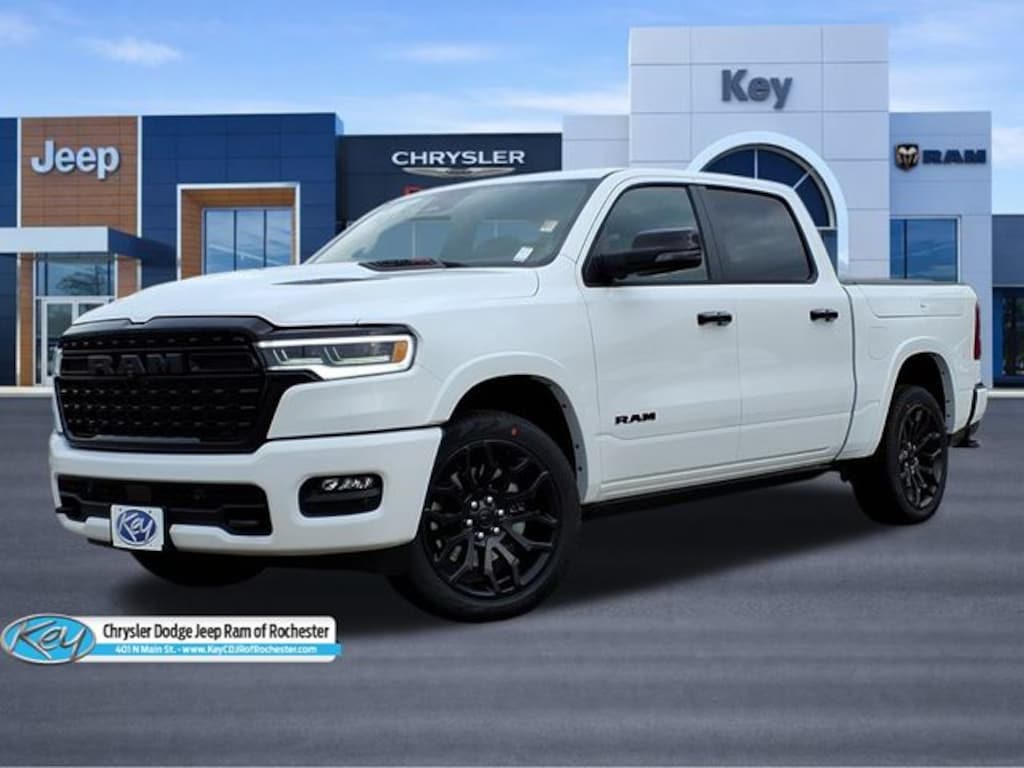 Key Chrysler Dodge Jeep Ram of Rochester is proud to present you with another True Market Priced Vehicle. This 2026 Ram 1500 Limited is loaded with the following Factory Options: Bed Utility Group (Exterior 115V AC Outlet and MOPAR 4 Adjustable Cargo Tie-Down Hooks), Limited Level An Equipment Group (12-Way/1-Way Trailer Connector, 14.4" Touchscreen Display, 240 Amp Alternator, 4G LTE Wi-Fi Hot Spot, Apple CarPlay, Connected Travel and Traffic Services, Connectivity - US/Canada, Disassociated Touchscreen Display, Drowsy Driver Detection, Evasive Steer Assist, Global Telematics Box Module, Google Android Auto, GPS Antenna Input, GPS Navigation, Hands-Free Active Driving Assist System, HD Radio, Heads-Up Display, Integrated Center Stack Radio, Integrated Voice Command with Bluetooth, Intersection Collision Assist System, LED CHMSL Lamp, Radio: Uconnect 5 Nav with 14.4" Display, RamBox Cargo Management System, SiriusXM Radio Service, SiriusXM with 360L, Smartphone as a Key Capable, Surround View Camera System, Traffic Sign Recognition, Tri-Fold Tonneau Cover, and USB Host Flip), Night Edition (Accent Color Door Handles, Accent Color Premium Power Mirrors, Accent Color Tailgate Handle, Auto Power-Folding Mirrors, Auto-Dimming Exterior Driver Mirror, Black Day Light Opening Moldings, Black Exterior Truck Badging, Black Grille Surround Texture 7 Black, Black Headlamp Bezels, Black Painted Exterior Mirrors Caps, Black Tail Lamp Bezels, Body Color Front Bumper, Body Color Rear Bumper with Step Pads, Convex Wide-Angle Exterior Mirror Insert, Dual Exhaust with Black Tips, Exterior Mirrors Courtesy Lamps, Exterior Mirrors with Heating Element, Exterior Mirrors with Memory, Exterior Mirrors with Supplemental Signals, Pirelli Brand Tires, RAM Grille Badge - Black, Sport Performance Hood, and Wheels: 22" x 9" Premium Black Aluminum), Quick Order Package 22M Limited, Trailer Tow Group (Trailer Brake Control, Trailer Light Check, Trailer Reverse Steering Control, and Trailer Tire Pressure Monitoring System), 19 Speakers, 3.92 Rear Axle Ratio, 4-Wheel Disc Brakes, ABS brakes, Active Noise Control System, Adjustable pedals, Air Conditioning, Alloy wheels, AM/FM radio, Apple CarPlay/Android Auto, Audio memory, Auto High-beam Headlights, Auto-dimming door mirrors, Auto-dimming Rear-View mirror, Auto-leveling suspension, Automatic temperature control, Bodyside moldings, Brake assist, Bumpers: chrome, Chrome Exterior Mirrors, Compass, Delay-off headlights, Dome Dual LED Reading Lamp, Driver door bin, Driver vanity mirror, Dual front impact airbags, Dual front side impact airbags, Dual-Pane Panoramic Sunroof, Electronic Stability Control, Exterior Parking Camera Rear, Front anti-roll bar, Front Bucket Seats, Front Center Armrest w/Storage, Front dual zone A/C, Front fog lights, Front License Plate Bracket, Front reading lights, Front wheel independent suspension, Fully automatic headlights, Garage door transmitter, Genuine wood console insert, Genuine wood dashboard insert, Genuine w Call us to ask about conditional rebates. Price includes: $1000 - 2026 National Bonus Cash . Exp. 03/02/2026 $3500 - 2026 National Retail Consume
