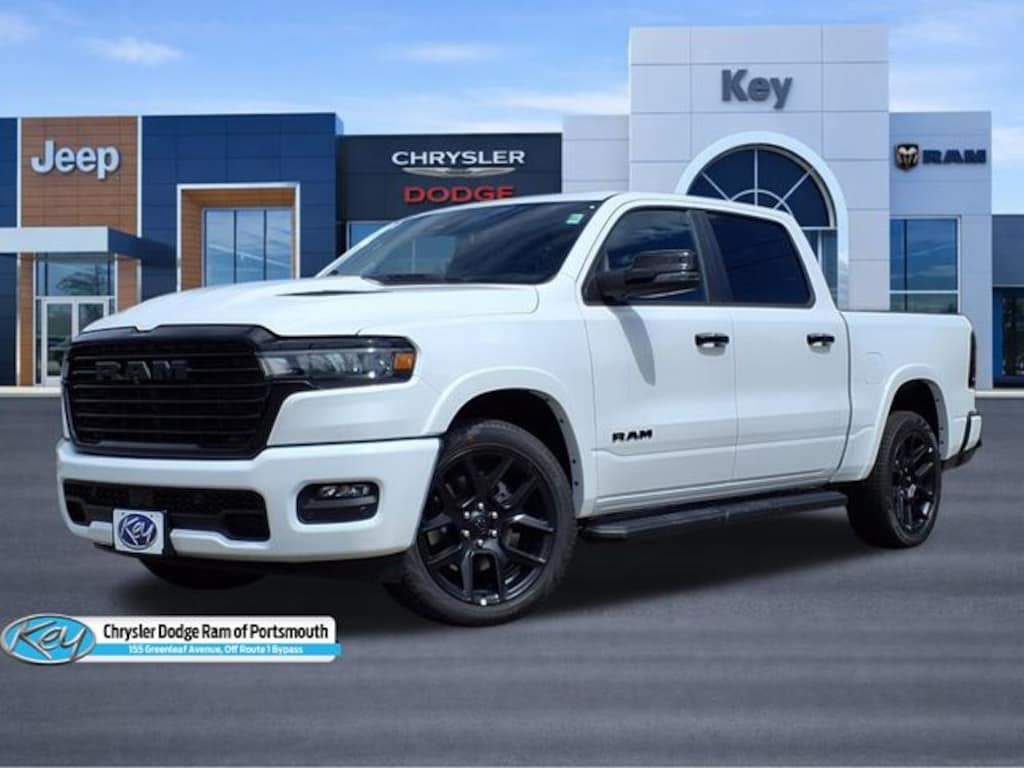 Key Chrysler Dodge Ram of Portsmouth is proud to present you with another True Market Priced Vehicle. This 2026 Ram 1500 Laramie is loaded with the following Factory Options: Advanced Safety Group II (12-Way/1-Way Trailer Connector, Active Driving Assist System, Drowsy Driver Detection, Evasive Steer Assist, Exterior Mirrors Approach Lamps, Intersection Collision Assist System, Surround View Camera System, and Traffic Sign Recognition), Laramie Level 2 Equipment Group (14.4" Touchscreen Display, 4G LTE Wi-Fi Hot Spot, Cluster 12" TFT Color Display, Connectivity - US/Canada, Front Passenger Interactive Display, GPS Navigation, Integrated Center Stack Radio, Power Tailgate, Rain Sensitive Windshield Wipers, SiriusXM Radio Service, and USB Host Flip), Night Edition (Accent Color Door Handles, Accent Color Premium Power Mirrors, Accent Color Tailgate Handle, Anti-Spin Differential Rear Axle, Auto Power-Folding Mirrors, Auto-Dimming Exterior Driver Mirror, Black Exterior Truck Badging, Black Headlamp Bezels, Black Interior Accents, Black Painted Exterior Mirrors Caps, Black Tail Lamp Bezels, Body Color Front Bumper, Convex Wide-Angle Exterior Mirror Insert, Exterior Mirrors Courtesy Lamps, Grille Surround 3 Black Texture 2 Black, Pirelli Brand Tires, Proximity Approach/Departure Lamps, RAM Grille Badge - Black, Sport Performance Hood, and Wheels: 22" x 9" Forged Aluminum), Quick Order Package 21H Laramie, Technology Group (Heads-Up Display and LED CHMSL Lamp), 10 Speakers, 3.55 Rear Axle Ratio, 4-Wheel Disc Brakes, ABS brakes, Active Noise Control System, Air Conditioning, Alloy wheels, AM/FM radio: SiriusXM with 360L, Apple CarPlay/Android Auto, Audio memory, Auto High-beam Headlights, Auto-dimming door mirrors, Auto-dimming Rear-View mirror, Automatic temperature control, Brake assist, Bumpers: chrome, Chrome Exterior Mirrors, Compass, Delay-off headlights, Dome Dual LED Reading Lamp, Driver door bin, Driver vanity mirror, Dual front impact airbags, Dual front side impact airbags, Dual-Pane Panoramic Sunroof, Electronic Stability Control, Front anti-roll bar, Front Bucket Seats, Front Center Armrest w/Storage, Front dual zone A/C, Front fog lights, Front License Plate Bracket, Front reading lights, Front wheel independent suspension, Fully automatic headlights, Garage door transmitter, Heated door mirrors, Heated front seats, Heated rear seats, Heated steering wheel, Illuminated entry, Leather steering wheel, Leather Trimmed Bucket Seats, LED Dome/Reading Lamp, Low tire pressure warning, Manufacturer's Statement of Origin, Memory seat, Mopar Black Tubular Side Steps, Navigation System, Occupant sensing airbag, Off-Road Information Pages, Outside temperature display, Overhead airbag, Overhead console, Panic alarm, ParkView Rear Back-Up Camera, Passenger door bin, Passenger vanity mirror, Power door mirrors, Power driver seat, Power passenger seat, Power steering, Power windows, Radio data system, RAM Gri