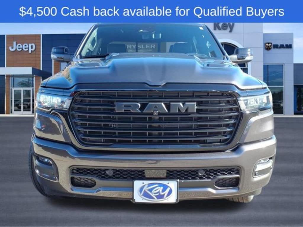 Key Chrysler Dodge Ram of Portsmouth is proud to present you with another True Market Priced Vehicle. This 2026 Ram 1500 Laramie is loaded with the following Factory Options: Advanced Safety Group II (12-Way/1-Way Trailer Connector, Active Driving Assist System, Drowsy Driver Detection, Evasive Steer Assist, Exterior Mirrors Approach Lamps, Intersection Collision Assist System, Surround View Camera System, and Traffic Sign Recognition), Bed Utility Group (Exterior 115V AC Outlet and MOPAR 4 Adjustable Cargo Tie-Down Hooks), Laramie Level 2 Equipment Group (14.4" Touchscreen Display, 4G LTE Wi-Fi Hot Spot, Cluster 12" TFT Color Display, Connectivity - US/Canada, Front Passenger Interactive Display, GPS Navigation, Integrated Center Stack Radio, Power Tailgate, Rain Sensitive Windshield Wipers, SiriusXM Radio Service, and USB Host Flip), Night Edition (Accent Color Door Handles, Accent Color Premium Power Mirrors, Accent Color Tailgate Handle, Anti-Spin Differential Rear Axle, Auto Power-Folding Mirrors, Auto-Dimming Exterior Driver Mirror, Black Exterior Truck Badging, Black Headlamp Bezels, Black Interior Accents, Black Painted Exterior Mirrors Caps, Black Tail Lamp Bezels, Body Color Front Bumper, Convex Wide-Angle Exterior Mirror Insert, Exterior Mirrors Courtesy Lamps, Grille Surround 3 Black Texture 2 Black, Pirelli Brand Tires, Proximity Approach/Departure Lamps, RAM Grille Badge - Black, Sport Performance Hood, and Wheels: 22" x 9" Forged Aluminum), Quick Order Package 21H Laramie, Technology Group (Heads-Up Display and LED CHMSL Lamp), 10 Speakers, 3.55 Rear Axle Ratio, 4-Wheel Disc Brakes, ABS brakes, Active Noise Control System, Air Conditioning, Alloy wheels, AM/FM radio: SiriusXM with 360L, Apple CarPlay/Android Auto, Audio memory, Auto High-beam Headlights, Auto-dimming door mirrors, Auto-dimming Rear-View mirror, Automatic temperature control, Brake assist, Bumpers: chrome, Chrome Exterior Mirrors, Compass, Delay-off headlights, Dome Dual LED Reading Lamp, Driver door bin, Driver vanity mirror, Dual front impact airbags, Dual front side impact airbags, Dual-Pane Panoramic Sunroof, Electronic Stability Control, Front anti-roll bar, Front Bucket Seats, Front Center Armrest w/Storage, Front dual zone A/C, Front fog lights, Front License Plate Bracket, Front reading lights, Front wheel independent suspension, Fully automatic headlights, Garage door transmitter, Heated door mirrors, Heated front seats, Heated rear seats, Heated steering wheel, Illuminated entry, Leather steering wheel, Leather Trimmed Bucket Seats, LED Dome/Reading Lamp, Low tire pressure warning, Manufacturer's Statement of Origin, Memory seat, Mopar Black Tubular Side Steps, Navigation System, Occupant sensing airbag, Off-Road Information Pages, Outside temperature display, Overhead airbag, Overhead console, Panic alarm, ParkView Rear Back-Up Camera, Passenger door bin, Passenger vanity mirror, Power door mirror