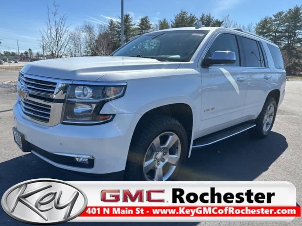 Key GMC Of Rochester is proud to present you with another True Market Priced Pre-Owned Vehicle. This 2017 Chevrolet Tahoe Premier is loaded with the following Factory Options: 4WD and Cocoa/Dune Leather Enhanced Driver Alert Package (Y86) (Forward Collision Alert Sensor Indicator, IntelliBeam Headlamps, Lane Keep Assist, and Low Speed Forward Automatic Braking), License Plate Front Mounting Package, Magnetic Ride Control Suspension Package, Max Trailering Package (Integrated Trailer Brake Controller), Preferred Equipment Group 1LZ (1st & 2nd Row Color-Keyed Carpeted Floor Mats, 3rd Row 60/40 Power Fold Split-Bench, 4-Wheel Antilock Disc Brakes w/Brake Assist, Auto-Dimming Inside Rear-View Mirror, Black Assist Steps w/Chrome Accent Strip, Bose Centerpoint Premium 10-Speaker Surround Sound, Color-Keyed Carpeting Floor Covering, Driver Inboard & Front Passenger Airbags, Electronic Cruise Control w/Set & Resume Speed, Enhanced Driver Information Center, Floor Console, Fog Lamps, Front & Rear Parking Assist, Hands Free Power Liftgate, Heated 2nd Row Seats, Heated Leather Wrapped Steering Wheel, Memory Settings, NavTraffic, OnStar Basic Plan For 5 Years, Passive Entry System, Power Release 2nd Row Bucket Seats, Power Tilt & Telescopic Steering Column, Power-Adjustable Accelerator & Brake Pedals, Power-Folding Heated Outside Mirrors, Push Button Keyless Start, Rear Cross-Traffic Alert, Remote Keyless Entry, Remote Vehicle Start, Roof-Mounted Luggage Rack Side Rails, Side Blind Zone Alert w/Lane Change Alert, SiriusXM Satellite Radio, Universal Home Remote, and Wireless Charging), Sun, Entertainment & Destinations Package (Power Sunroof and Rear Seat Blu-Ray/DVD Entertainment System), 4WD, Cocoa/Dune Leather, 10 Speakers, 3rd row seats: split-bench, 4-Wheel Disc Brakes, 5 12-Volt Auxiliary Power Outlets, 6-Way Power Front Passenger Seat Adjuster, ABS brakes, Adaptive suspension, Adjustable pedals, Air Conditioning, Alloy wheels, AM/FM radio: SiriusXM, Apple CarPlay/Android Auto, Auto High-beam Headlights, Auto-dimming door mirrors, Auto-dimming Rear-View mirror, Automatic temperature control, Bodyside moldings, Brake assist, Bumpers: body-color, Cargo Net, CD player, Compass, Delay-off headlights, Driver door bin, Driver vanity mirror, Dual front impact airbags, Dual front side impact airbags, Electronic Stability Control, Emergency communication system: OnStar Guidance, Exterior Parking Camera Rear, Front anti-roll bar, Front Bucket Seats, Front Center Armrest, Front dual zone A/C, Front fog lights, Front Heated Reclining Bucket Seats, Front reading lights, Front wheel independent suspension, Fully automatic headlights, Garage door transmitter, Heated & Vented Driver & Front Passenger Seats, Heated door mirrors, Heated front seats, Heated rear seats, Heated steering wheel, High-Intensity Discharge Headlights, Illuminated entry, Low tire pressure warning, Memory seat, Navigation System, Occupant sensing airbag, Outside temperature display, Overhead airbag, Overhead console, Panic alarm, Passeng