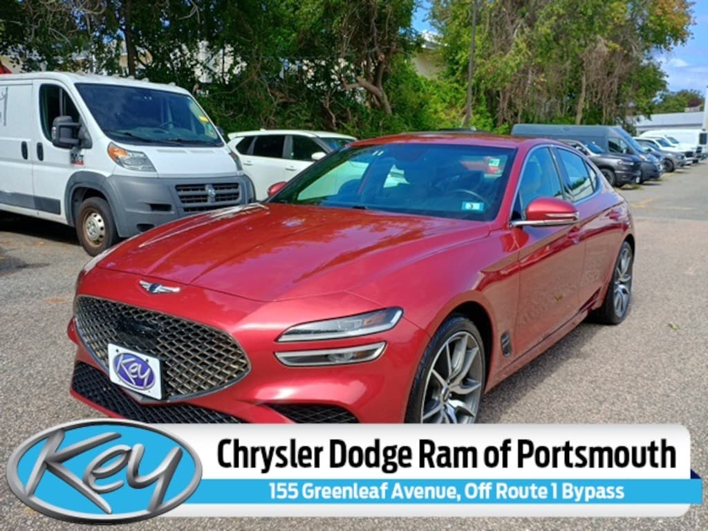 Key Chrysler Dodge Ram of Portsmouth is proud to present you with another True Market Priced Pre-Owned Vehicle. Transparent Pricing Of $ 24999 !! This 2023 Genesis G70 2.0T is loaded with the following Factory Options: Option Group 01, 4-Wheel Disc Brakes, 6 Speakers, ABS brakes, Air Conditioning, Alloy wheels, AM/FM radio: SiriusXM, Android Auto & Apple CarPlay, Anti-whiplash front head restraints, Auto High-beam Headlights, Auto-dimming Rear-View mirror, Automatic temperature control, Brake assist, Bumpers: body-color, Delay-off headlights, Driver door bin, Driver vanity mirror, Dual front impact airbags, Dual front side impact airbags, Electronic Stability Control, Emergency communication system: Genesis Connected Services, Exterior Parking Camera Rear, Four wheel independent suspension, Front anti-roll bar, Front Bucket Seats, Front Center Armrest, Front dual zone A/C, Front reading lights, Fully automatic headlights, Garage door transmitter: HomeLink, Heated door mirrors, Heated front seats, Heated Multi-Adjustable Front Bucket Seats, Heated steering wheel, Illuminated entry, Knee airbag, Leatherette Seating Surfaces, Low tire pressure warning, Navigation System, Occupant sensing airbag, Outside temperature display, Overhead airbag, Overhead console, Panic alarm, Passenger door bin, Passenger vanity mirror, Power door mirrors, Power driver seat, Power passenger seat, Power steering, Power windows, Radio: AM/FM/SiriusXM/HD Audio System, Rear anti-roll bar, Rear reading lights, Rear seat center armrest, Rear window defroster, Remote keyless entry, Security system, Speed control, Speed-Sensitive Wipers, Split folding rear seat, Steering wheel mounted audio controls, Tachometer, Telescoping steering wheel, Traction control, Trip computer, Turn signal indicator mirrors, Variably intermittent wipers, and Wheels: 19" x 8.0J Fr & 19" x 8.5J Rr Alloy!!