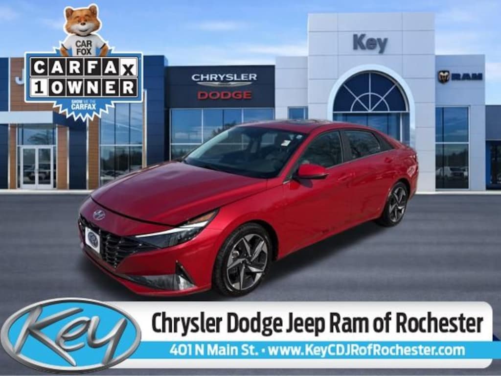 Key Chrysler Dodge Jeep Ram of Rochester is proud to present you with another True Market Priced Pre-Owned Vehicle. Transparent Pricing Of $ 17995 !! This 2023 Hyundai Elantra Limited is loaded with the following Factory Options: Cargo Package (Cargo Block, Cargo Net, and Reversible Cargo Tray), Option Group 01, 17" x 7.0J Alloy Wheels, 4-Wheel Disc Brakes, 8 Speakers, ABS brakes, Air Conditioning, Alloy wheels, AM/FM radio: SiriusXM, Apple CarPlay & Android Auto, Auto High-beam Headlights, Auto-dimming Rear-View mirror, Automatic temperature control, Brake assist, Bumpers: body-color, Delay-off headlights, Driver door bin, Driver vanity mirror, Dual front impact airbags, Dual front side impact airbags, Electronic Stability Control, Emergency communication system: Blue Link Connected Car Service (3-year complimentary subscription), Exterior Parking Camera Rear, First Aid Kit, Front anti-roll bar, Front Bucket Seats, Front Center Armrest, Front dual zone A/C, Front reading lights, Front wheel independent suspension, Fully automatic headlights, Heated door mirrors, Heated Front Seats, Heated front seats, Illuminated entry, Leather-Trimmed Seats, Low tire pressure warning, Navigation System, Occupant sensing airbag, Outside temperature display, Overhead airbag, Overhead console, Panic alarm, Passenger door bin, Passenger vanity mirror, Power door mirrors, Power driver seat, Power moonroof, Power steering, Power windows, Radio: AM/FM/HD/SiriusXM Display Audio, Rear seat center armrest, Rear window defroster, Remote keyless entry, Security system, Speed control, Speed-sensing steering, Split folding rear seat, Steering wheel mounted audio controls, Tachometer, Telescoping steering wheel, Tilt steering wheel, Traction control, Trip computer, Turn signal indicator mirrors, and Variably intermittent wipers!!
