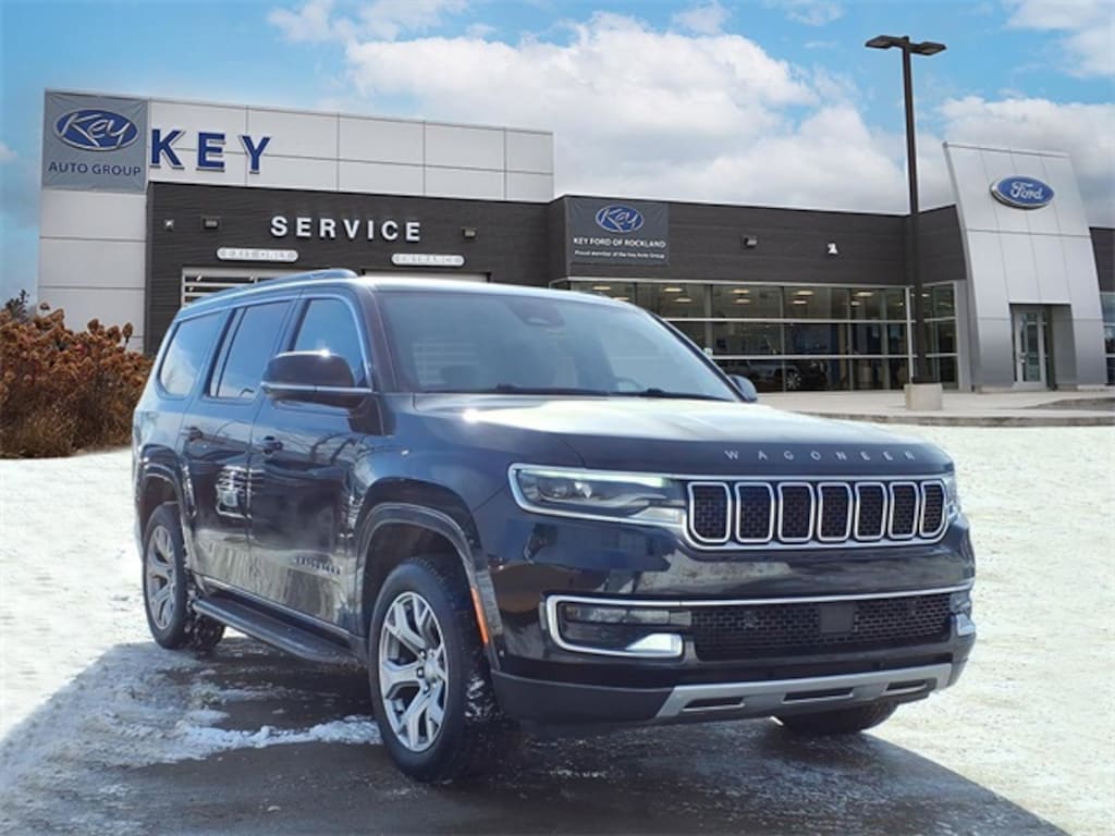 Key Ford of Rockland is proud to present you with another True Market Priced Pre-Owned Vehicle. Transparent Pricing Of $ 33799 !! This 2022 Jeep Wagoneer Series II is loaded with the following Factory Options: Quick Order Package 22J, 4-Wheel Disc Brakes, ABS brakes, Dual front impact airbags, Dual front side impact airbags, Exterior Parking Camera Rear, Heated door mirrors, and Power Liftgate Quick Order Package 22J, 4-Wheel Disc Brakes, ABS brakes, Dual front impact airbags, Dual front side impact airbags, Exterior Parking Camera Rear, Heated door mirrors, Power Liftgate, 10 Speakers, 3.21 Rear Axle Ratio, 3rd row seats: bench, Adjustable pedals, Air Conditioning, Alloy wheels, AM/FM radio: SiriusXM with 360L, Anti-whiplash front head restraints, Audio memory, Auto-dimming door mirrors, Auto-dimming Rear-View mirror, Auto-leveling suspension, Automatic temperature control, Brake assist, Bumpers: body-color, Compass, Delay-off headlights, Driver door bin, Driver vanity mirror, Driver's Seat Mounted Armrest, Electronic Stability Control, Four wheel independent suspension, Front anti-roll bar, Front Bucket Seats, Front Center Armrest w/Storage, Front dual zone A/C, Front fog lights, Front reading lights, Fully automatic headlights, Garage door transmitter, Genuine wood console insert, Genuine wood dashboard insert, Genuine wood door panel insert, Heated front seats, Heated steering wheel, Illuminated entry, Knee airbag, Leather Trimmed Bucket Seats, Low tire pressure warning, Memory seat, NAVIGATION System, Normal Duty Suspension, Occupant sensing airbag, Outside temperature display, Overhead airbag, Overhead console, Panic alarm, Passenger door bin, Passenger seat mounted armrest, Passenger vanity mirror, Pedal memory, Power adjustable front head restraints, Power door mirrors, Power driver seat, Power passenger seat, Power steering, Power windows, Radio data system, Radio: Uconnect 5 Nav w/10.1" Display, Rain sensing wipers, Rear air conditioning, Rear anti-roll bar, Rear dual zone A/C, Rear reading lights, Rear seat center armrest, Rear window defroster, Rear window wiper, Reclining 3rd row seat, Remote keyless entry, Security system, Speed control, Speed-sensing steering, Speed-Sensitive Wipers, Split folding rear seat, Steering wheel memory, Steering wheel mounted audio controls, Tachometer, Telescoping steering wheel, Tilt steering wheel, Traction control, Trip computer, Turn signal indicator mirrors, Variably intermittent wipers, Ventilated front seats, Voltmeter, and Wheels: 20" x 9.0" Aluminum Base Finish!!