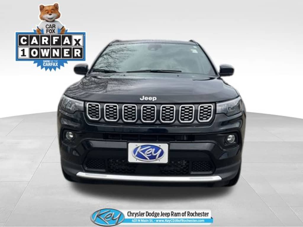 Key Chrysler Dodge Jeep Ram of Rochester is proud to present you with another True Market Priced Pre-Owned Vehicle. Transparent Pricing Of $ 25499 !! This 2025 Jeep Compass Limited is loaded with the following Factory Options: 4WD Quick Order Package 29G, 4WD, 10.1" Touchscreen Display, 3.73 Final Drive Ratio, 4-Wheel Disc Brakes, 6 Speakers, ABS brakes, Air Conditioning, Alloy wheels, AM/FM radio: SiriusXM, Apple CarPlay/Android Auto, Auto High-beam Headlights, Auto-dimming Rear-View mirror, Automatic temperature control, Brake assist, Bumpers: body-color, Compass, Delay-off headlights, Driver door bin, Driver vanity mirror, Dual front impact airbags, Dual front side impact airbags, Electronic Stability Control, Emergency communication system: Jeep Connect, Four wheel independent suspension, Front anti-roll bar, Front Bucket Seats, Front Center Armrest w/Storage, Front dual zone A/C, Front fog lights, Front License Plate Bracket, Front reading lights, Fully automatic headlights, Heated door mirrors, Heated front seats, Illuminated entry, Knee airbag, Leather Shift Knob, Leather steering wheel, Leatherette Seats, Low tire pressure warning, Occupant sensing airbag, Outside temperature display, Overhead airbag, Overhead console, Panic alarm, ParkView Rear Back-Up Camera, Passenger door bin, Passenger vanity mirror, Power door mirrors, Power driver seat, Power steering, Power windows, Premium audio system: UConnect 5, Radio: Uconnect 5 w/10.1" Display, Rain sensing wipers, Rear anti-roll bar, Rear seat center armrest, Rear window defroster, Rear window wiper, Remote keyless entry, Security system, Speed control, Split folding rear seat, Spoiler, Steering wheel mounted audio controls, Tachometer, Telescoping steering wheel, Tilt steering wheel, Traction control, Trip computer, Turn signal indicator mirrors, Variably intermittent wipers, and Wheels: 18" x 7" Painted Diamond Cut Alum (DISC)!!