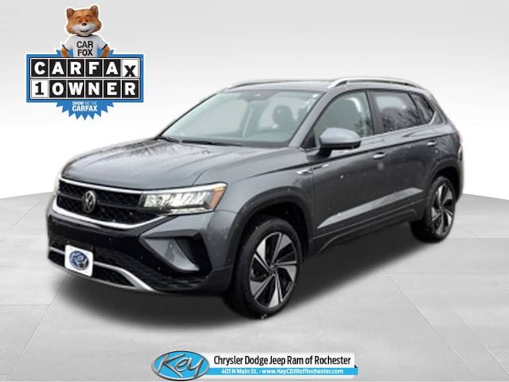 Key Chrysler Dodge Jeep Ram of Rochester is proud to present you with another True Market Priced Pre-Owned Vehicle. Transparent Pricing Of $ 21549 !! This 2024 Volkswagen Taos 1.5T SE is loaded with the following Factory Options: 4-Wheel Disc Brakes, 5.20 Axle Ratio, 6 Speakers, ABS brakes, Active Blind Spot Monitor, Air Conditioning, Alloy wheels, AM/FM radio: SiriusXM with 360L, Auto High-beam Headlights, Automatic temperature control, Brake assist, Bumpers: body-color, CloudTex & Cloth Seating Surfaces, Compass, Delay-off headlights, Driver door bin, Driver vanity mirror, Dual front impact airbags, Dual front side impact airbags, Electronic Stability Control, Emergency communication system: VW Car-Net Safe & Secure 5-year, Exterior Parking Camera Rear, Four wheel independent suspension, Front anti-roll bar, Front Bucket Seats, Front Center Armrest, Front dual zone A/C, Front reading lights, Front Strut Rear Multi-Link Suspension, Fully automatic headlights, Heated door mirrors, Heated Front Bucket Seats, Heated front seats, Heated steering wheel, Illuminated entry, Leather Shift Knob, Low tire pressure warning, Occupant sensing airbag, Outside temperature display, Overhead airbag, Overhead console, Panic alarm, Passenger door bin, Passenger vanity mirror, Power door mirrors, Power driver seat, Power steering, Power windows, Radio data system, Radio: MIB3 Composition Media AM/FM/HD, Rain sensing wipers, Rear anti-roll bar, Rear seat center armrest, Rear window defroster, Rear window wiper, Remote keyless entry, Security system, Speed control, Speed-sensing steering, Split folding rear seat, Spoiler, Steering wheel mounted audio controls, Tachometer, Telescoping steering wheel, Tilt steering wheel, Traction control, Trip computer, Variably intermittent wipers, and Wheels: 18" 2-Tone Machined Alloy!!